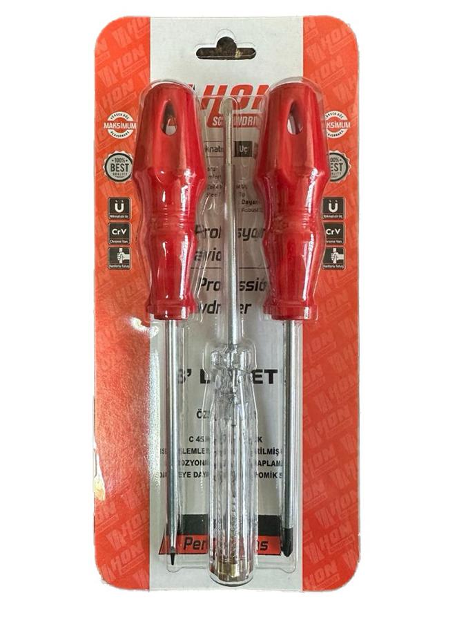 Üç parçadan oluşan set, düz tornavida, yıldız tornavida ve kontrol kalemi içerir, böylece farklı türdeki vidaları kolayca sıkma ve gevşetme imkanı sunar; Tornavida seti, evde, işte veya atölyede çeşitli işler için ideal bir araçtır; hem profesyonel hem de amatör kullanıcılar için uygundur; Düz tornavida ve yıldız tornavida olmak üzere iki ana tornavida tipi, farklı boyutlardaki vidaları açma ve sıkma işlemlerinde esneklik sağlar; Kontrol kalemi, vidaların doğru şekilde yerleştirildiğinden emin olmanızı ve gerektiğinde ayarlamalar yapmanızı kolaylaştırır;