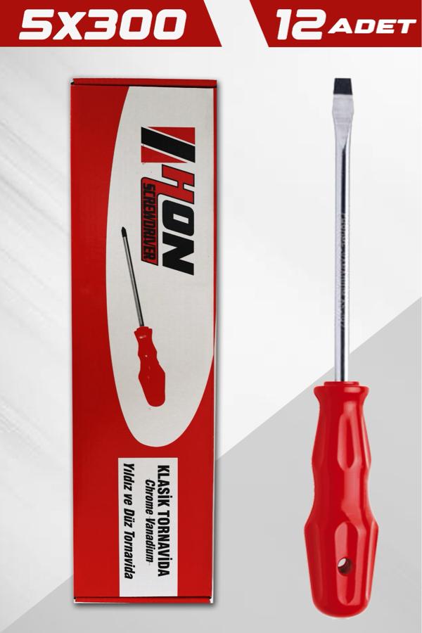 %100 yerli uretim.5x300 duz uclu tornavida.Chrome vanadium celik,miknatisli uc.Ergonomik sap.Toptan ve perakende satis icin iletisim numaramizdan ulasabilirsiniz.